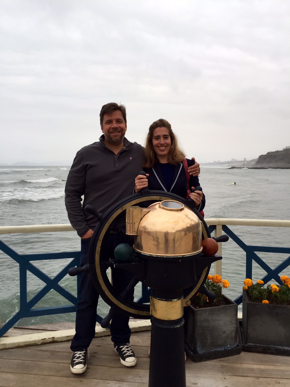The traffic is unbelievably bad in Lima (especially today when they were having a parade for the upcoming Independence Day.) After about 30 minutes we had to get out of our cab and walk ten minutes back to our apartment so Sean could get on a conference call. Most people in Lima eat a very large, late lunch on Sundays which means that very few restaurants are open in the evening. But, of course we totally messed that up by having a huge late breakfast (typical Americans) and we were too tired to go back out after La Rosa Nautica (to eat or shop) so we ordered pizza. I made Sean order (I have to have some fun. It’s good practice for him!)