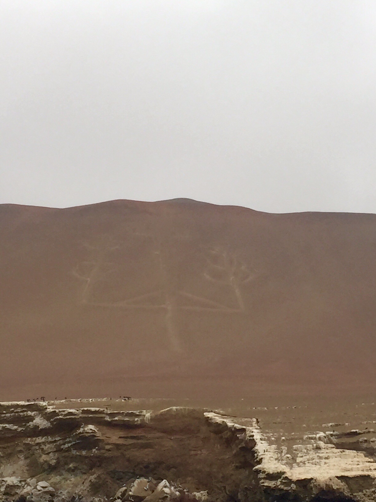 The ride to the Ballestas Islands, a rocky group of small islands which is a marine sanctuary off the coast took about 25 minutes. It was chilly but luckily the water wasn’t too choppy. On the way we passed the El Candelabro an etching that looks like a giant candlestick or trident carved into the sand dunes over 2000 years ago. It is nearly 600 feet high and can be seen from miles away. No one really knows who carved it. Was it the same people responsible for the Nasca Lines? Aliens? Ancient Mariners? It’s one of Peru’s many mysteries. Since it rains very little in this part of Peru (except aparently the morning the Hayes family wants to see some penguins) the carving hasn’t washed away or filled with sand.