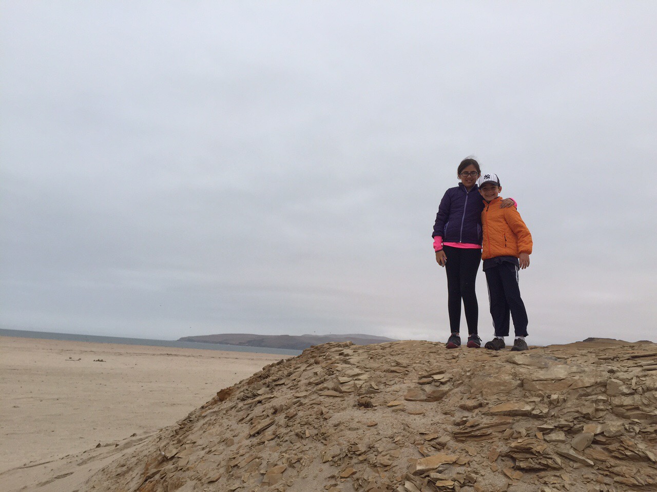 We arrived back at the hotel pier cold and a little bit wet but excited (even me!) at having seen some nature. So, I insisted that we go see even MORE nature! Despite the promise made by the hotel worker, the sun had not come out so we decide to drive the short distance to the Paracas Nature Reserve. The park is huge and we only drove thought a small part of it. Bumping along on the unpaved rocky road In our rickety rental car, we felt like we were the only people…on another planet. The rust colored sand dunes rose in every direction with no one in sight. Finally, we stopped the car at a rocky beach and watched the waves crash on shore. We decided that we were at too great a risk for getting lost and wrecking the car so we turned around and headed back to the hotel for lunch.