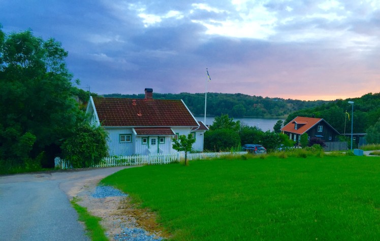 There’s not much to the town, a former fishing village sitting on Sweden’s west coast. There’s an inn, a place to dock your boat, a tennis court, a few swimming areas and some houses. It’s a blink-and-you’ll-miss-it sort of place but the focus is not on the town but on the water. You can see the North Atlantic and its gang of smooth, gray rocks from most places in town: from the craggy, mossy hills, the dock lined with red and white houses and from my in-law’s house. The rocky terrain in this part of the country is shaped by the glacier that cut through, tens of thousands of years ago and left lots of small islands and rocky outposts in its wake. Bright red climbing roses crawl up the sides of rocks and the white washed fences. Wild flowers dot fields covered by sheep and birch and fir trees line the side of the road. To me, the landscape is quintessential Sweden. But then again, I never really knew Sweden before I met Sean. Although the landscape could not be more different, it still reminds me a lot of my summers in Finland.