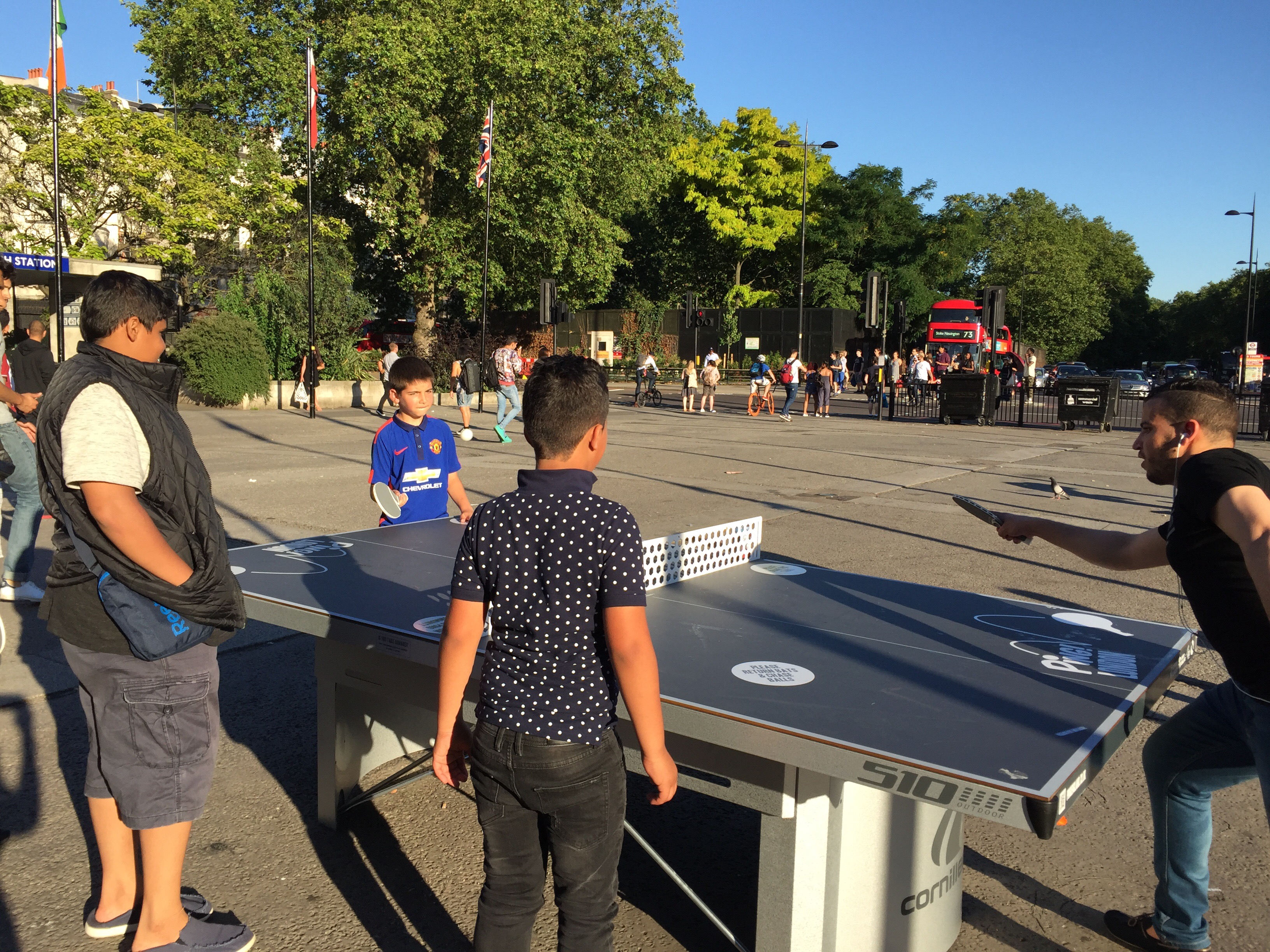 But, the sushi was just an appetizer. We had a reservation at Lurra, a Basque restaurant in Marylebone that our friend Nick had recommended. So, in an attempt to walk off our sushi we headed back through Hyde Park toward the restaurant. It was so brutally hot that day and with nary a tree in sight, Oscar was ready to set up camp in the middle of Hyde Park and call it a day. It was only the promise of seeing Speakers Corner where on Sunday’s Brits can come and publicly speak, air their grievances and start debates that kept him going. He has many grievances to air but, alas, it was Monday. He did, however, stop for a quick pick up game of ping pong in the park before dinner.